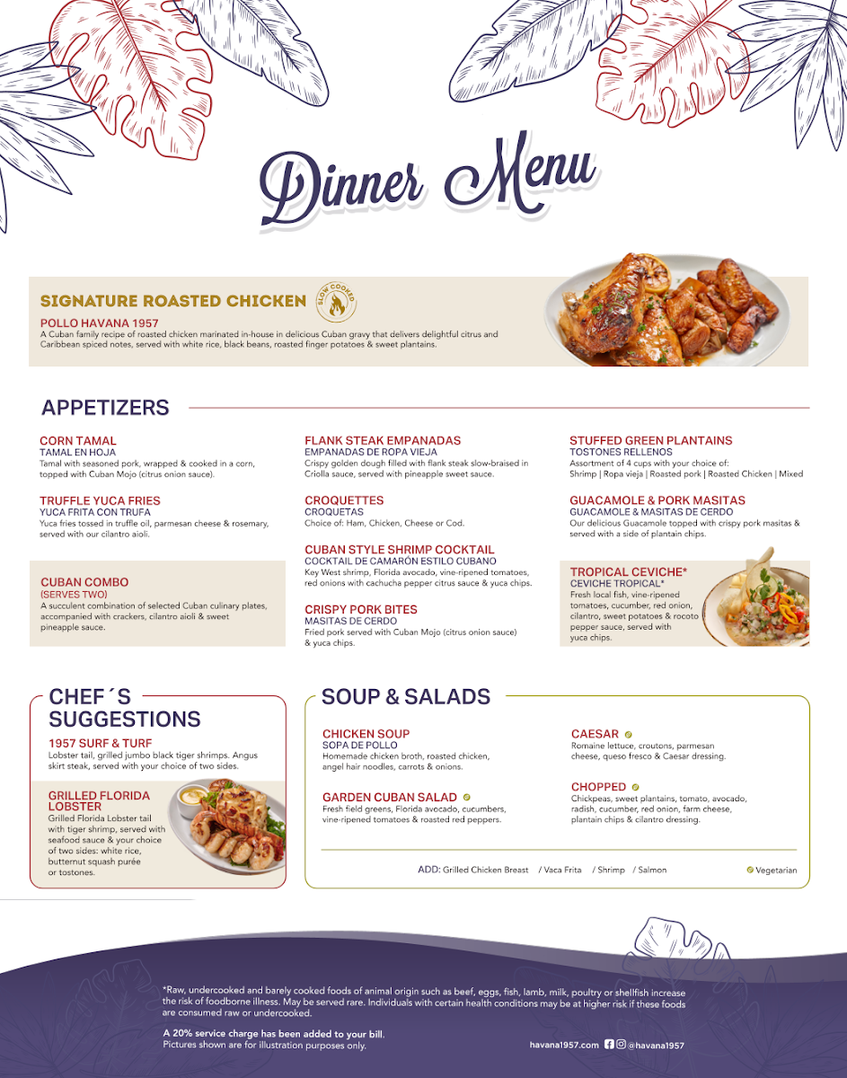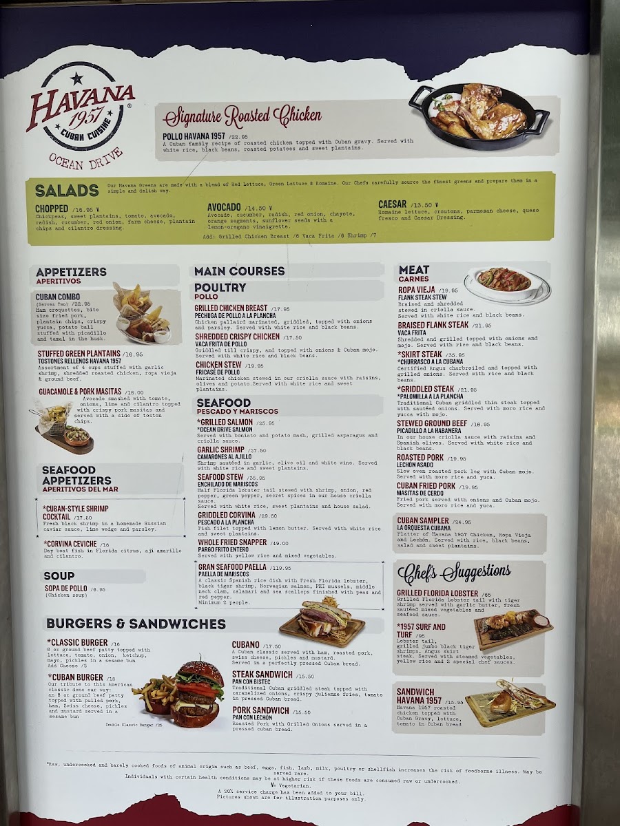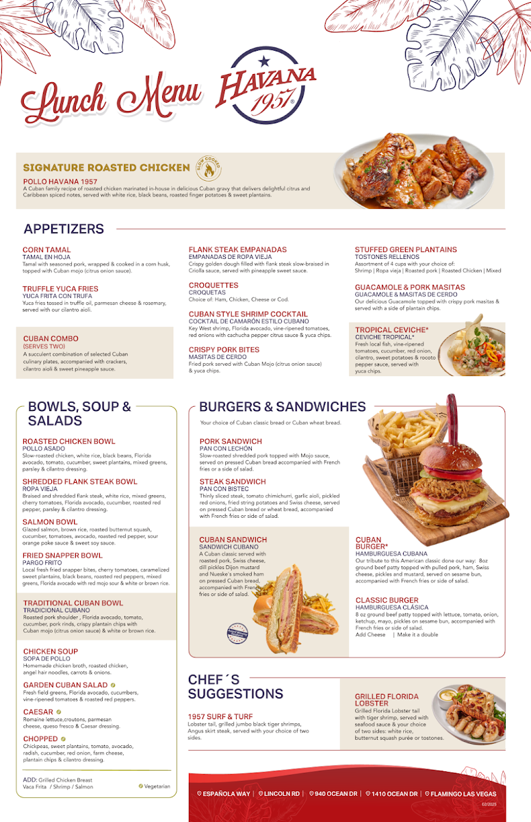 Welcome to Havana 1957 Ocean Drive, an authentic Cuban culinary gem nestled in the heart of Miami Beach. Here, the vibrant spirit of Cuba is alive in both the atmosphere and the delightful menu offerings. Indulge in their signature Cubano Sandwich, layered with Nueske smoked ham and roasted pork, or savor the Classic Burger, a true crowd-pleaser. Don't miss the Guacamole topped with crispy pork masitas—a satisfying appetizer that perfectly pairs with plantain chips.